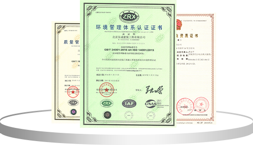 先后取得北京市建設(shè)委員會核發(fā)的機電工程專業(yè)承包、裝飾裝修專業(yè)承包、建筑智能化專業(yè)承包等多項專業(yè)承包施工資質(zhì);并順利通過ISO9001、T50430質(zhì)量管理體系認(rèn)證,ISO14001環(huán)境管理體系認(rèn)證和OHSAS18001職業(yè)健康安全管理體系認(rèn)證,完成三個體系的整合認(rèn)證工作。